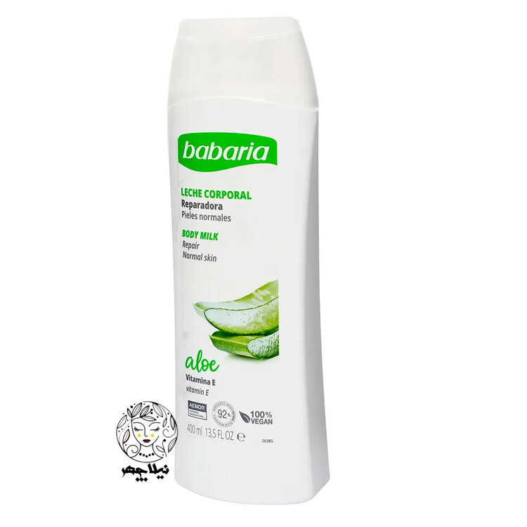 شیر بدن باباریا babaria مدل آلوورا ALOE مناسب پوست نرمال حجم 400 میل