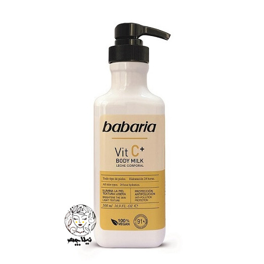 شیر بدن پمپی باباریا babaria حاوی ویتامین C مناسب انواع پوست حجم 500 میل