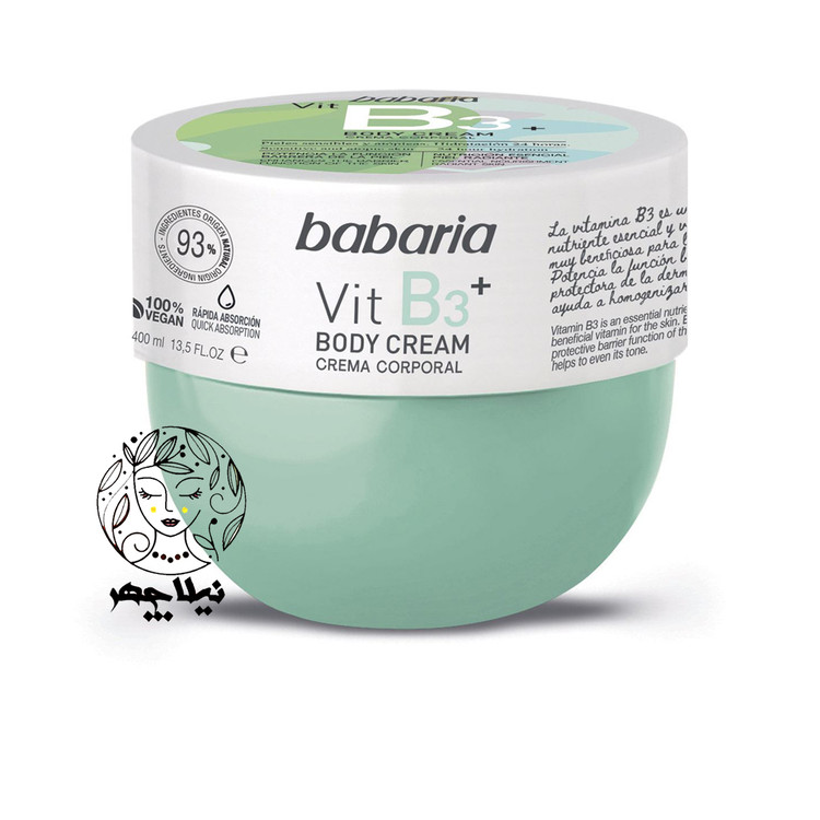 کرم بدن کاسه ای باباریا babaria حاوی ویتامین B3 مناسب پوست حساس حجم 400 میل